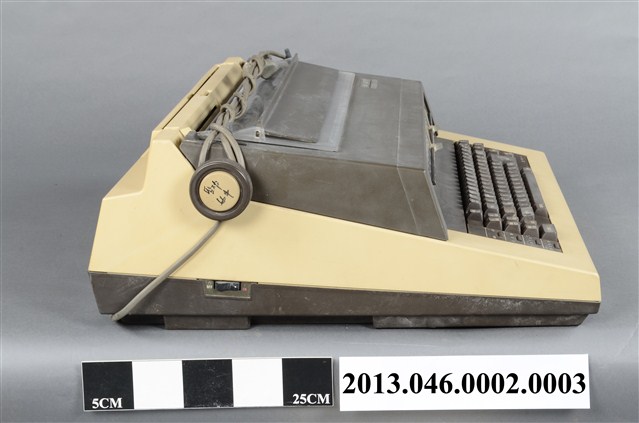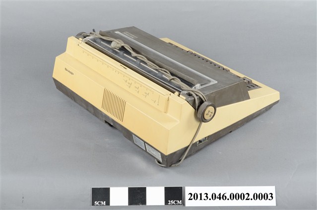 日本夏普公司(SHARP CORPORATION)生產之英文電子打字機,型號:ZX-400,產品序號:30254595,當時由事務機器代理廠商震旦行代理進口。