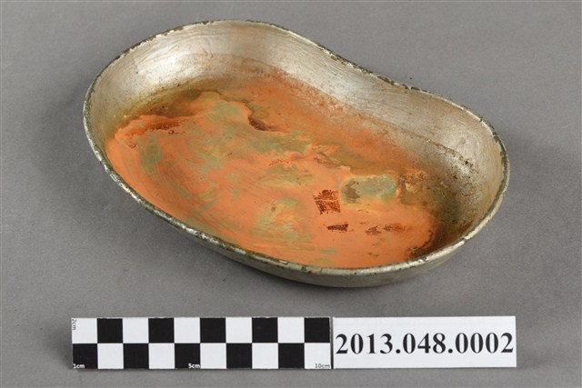 該物件為醫療用途之彎盆,據捐贈者所描述,該物件為日本時代開設之仁壽堂藥房,主要替患者包紮傷口時所用,當時藥房往往需擔任起基層醫療諮詢或投藥的任務,舉凡簡單的感冒、刀傷、燙傷等簡單的醫療行為都會在藥房內進行。
