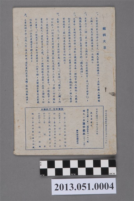 2013.051.0004 立達出版社出版《國民小學寫字範本》第七冊(4上)