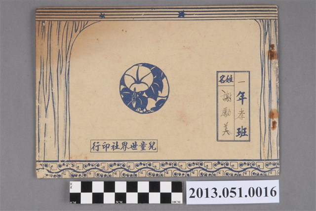 本冊題名「蠟筆畫」,提供蔬果、動物以及生活物件的線圖,供兒童自由塗色。內頁已有2頁上色、一缺頁。封底署名「一年孝班謝麗美」