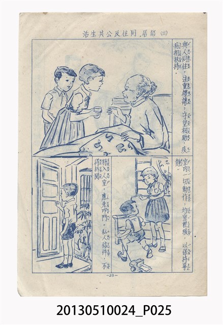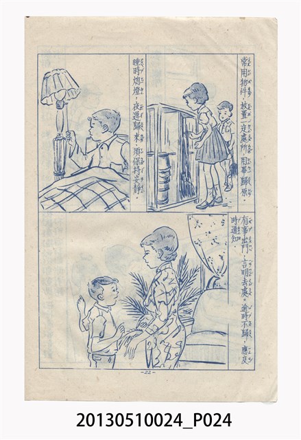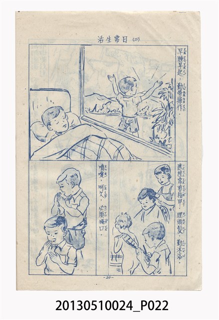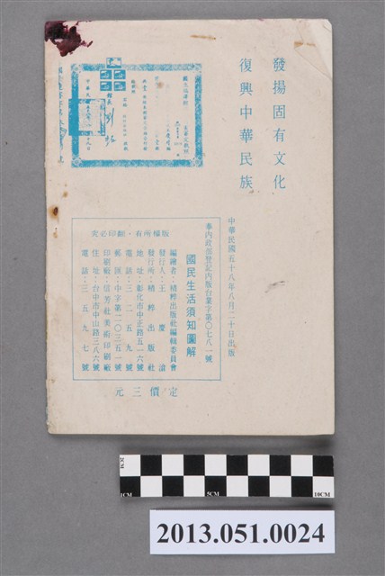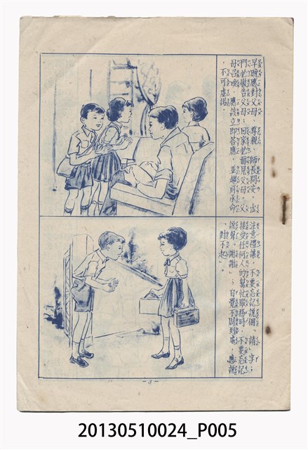 中華復興運動推動委員會為推行「中華文化」,在日常生活規範方面,於1968年4月30日頒布《國民生活須知》,試圖推廣理想的生活規範。「國民生活須知」共分六章,分別為:一般守則、食的方面、衣的方面、住的方面、行的方面以及育樂方面。其最重要的精神內涵是長幼尊卑與嚴格克己。本冊以圖像輔助文字解說,提供學童生活的禮儀觀念。