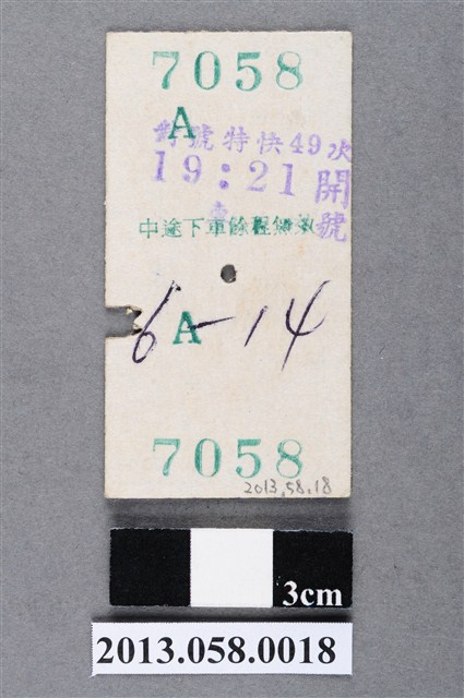 此組物件為民國59年12月6日至民國61年7月8日,宜蘭地區之間往來以及宜蘭地區至台北的火車票根,共計13張。此些地域的往來包含宜蘭、羅東、頭城、礁溪以及台北等地,而票根的背後,印有「保密防諜,人人有責」、「建設台灣,光復大陸」、「打回大陸,解救同胞」、「排隊買票,順序上車」以及「中途下車,餘程無效」等字樣,顯現出濃烈的國家反共氛圍以及民眾的社會秩序仍有待改善的特殊社會情境,故建議列為第三級藏品。