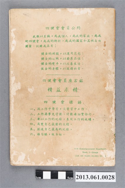 2013.061.0028 中國農村復興聯合委員會編印《四健手冊(六):康樂(乙)唱歌》