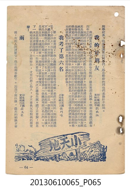 1、邱各容,《臺灣兒童文學史》(臺北:五南,2005),頁37-69。2、 林佩縈,2006。〈1950年代臺灣兒童期刊發展之研究──以《學友》、《東方少年》為例〉,國立臺北教育大學社會科教育學系歷史組專題研究論文,頁19-20。