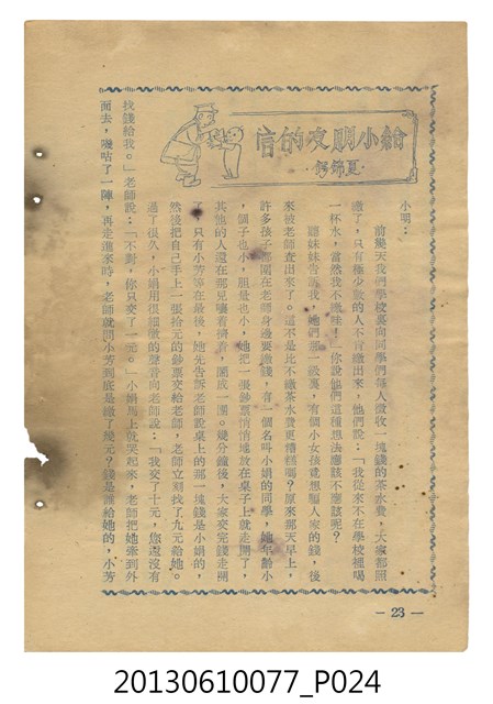 1、邱各容,《臺灣兒童文學史》(臺北:五南,2005),頁37-69。2、 林佩縈,2006。〈1950年代臺灣兒童期刊發展之研究──以《學友》、《東方少年》為例〉,國立臺北教育大學社會科教育學系歷史組專題研究論文,頁19-20。