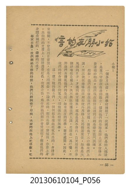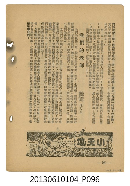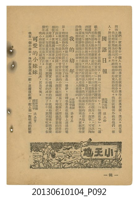 1、邱各容,《臺灣兒童文學史》(臺北:五南,2005),頁37-69。2、 林佩縈,2006。〈1950年代臺灣兒童期刊發展之研究──以《學友》、《東方少年》為例〉,國立臺北教育大學社會科教育學系歷史組專題研究論文,頁19-20。