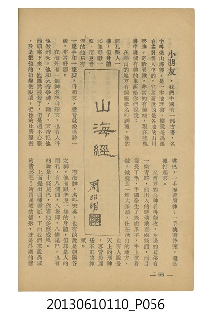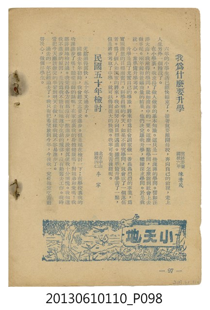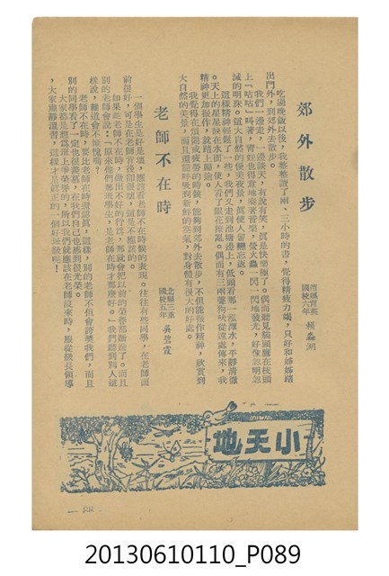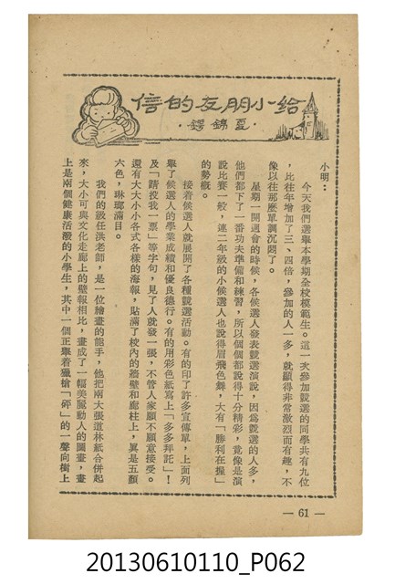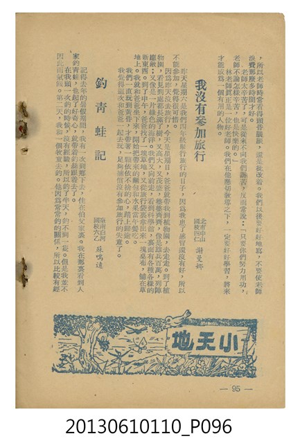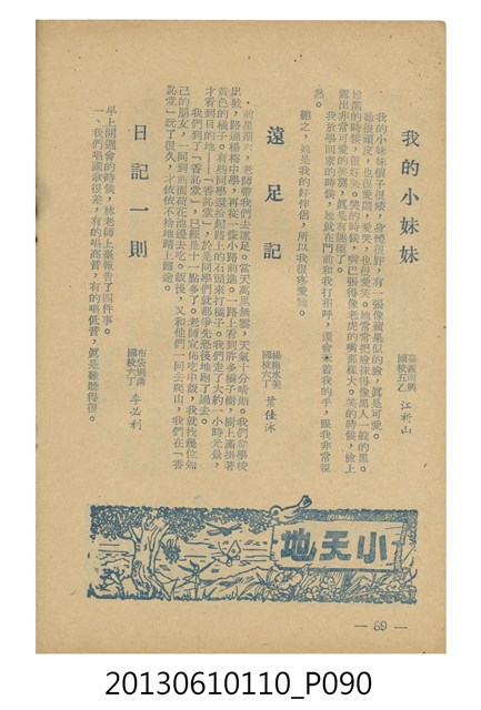 1、邱各容,《臺灣兒童文學史》(臺北:五南,2005),頁37-69。2、 林佩縈,2006。〈1950年代臺灣兒童期刊發展之研究──以《學友》、《東方少年》為例〉,國立臺北教育大學社會科教育學系歷史組專題研究論文,頁19-20。