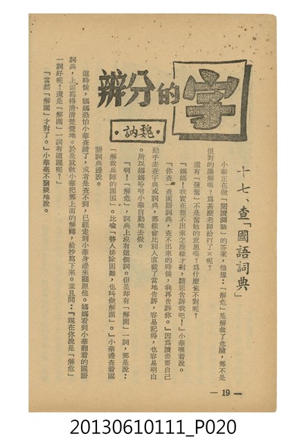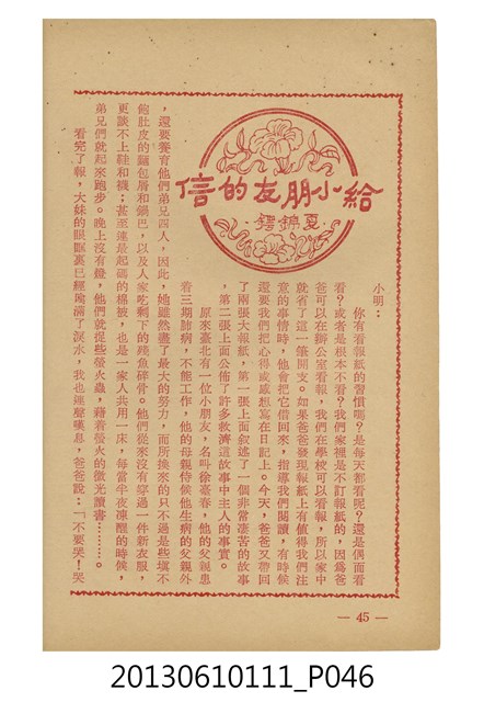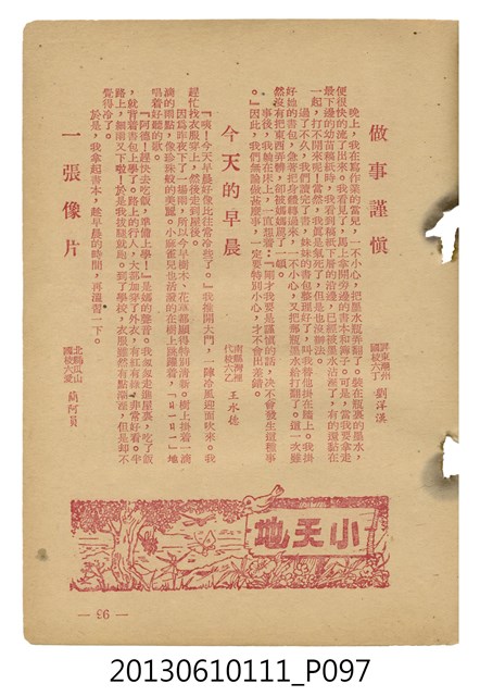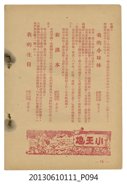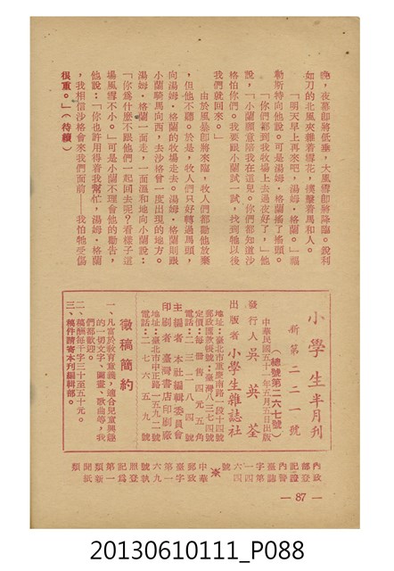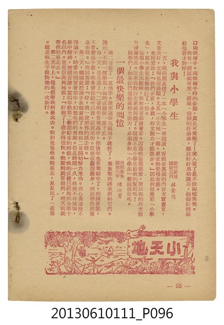 1、邱各容,《臺灣兒童文學史》(臺北:五南,2005),頁37-69。2、 林佩縈,2006。〈1950年代臺灣兒童期刊發展之研究──以《學友》、《東方少年》為例〉,國立臺北教育大學社會科教育學系歷史組專題研究論文,頁19-20。