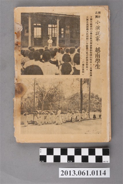 《小學生》由臺灣省政府教育廳於1951年3月20日創刊,採半月刊形式,每月5日、20日為發行日,至1966年停刊。內容包含童話、故事、小說、語文學習、科學、常識、史地、圖畫、兒歌、人物介紹、新書介紹,等各類專欄,也有提供兒童創作的「小天地」。紀錄了1950、1960年代部分社會情狀以及兒童生活。館藏自1957年9月到1966年6月間之《小學生》,計127冊(本案125件,另有館藏2013.014.0003、2013.014.0004等2件),約佔總刊數394之32%。均為32開本,採書訂包裝,封面為彩色印刷,內文為黑、藍、橘、紅間用之單色印刷。於1961年8月以前每期64頁,每本2.5元;自1961年9月起每期96頁,每本4.5元。本件為小學生雜誌社出版《小學生》271號(新第225號)。封面為以長方色塊拼貼之多個放色狀幾何圖繪。內容為徵文比賽結果等人物傳記、歷史故事及其他文章。封底為攝影。