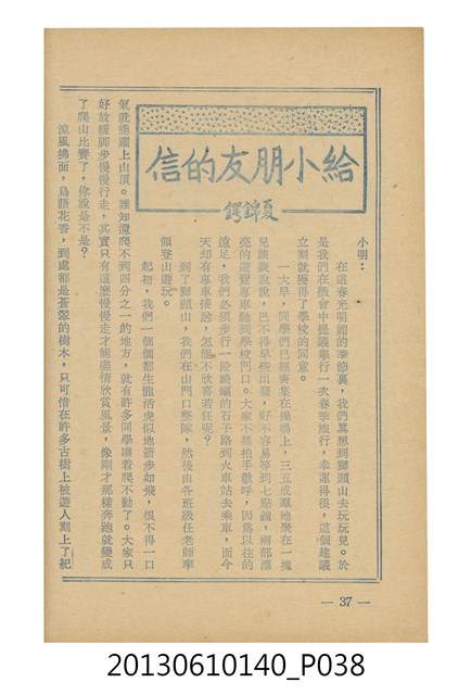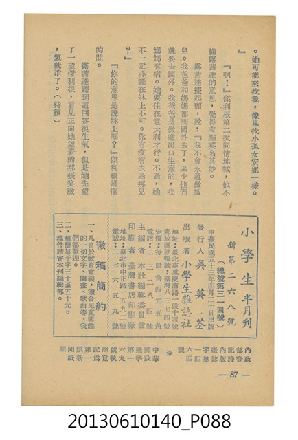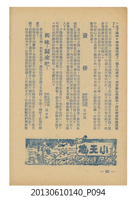 1、邱各容,《臺灣兒童文學史》(臺北:五南,2005),頁37-69。2、 林佩縈,2006。〈1950年代臺灣兒童期刊發展之研究──以《學友》、《東方少年》為例〉,國立臺北教育大學社會科教育學系歷史組專題研究論文,頁19-20。