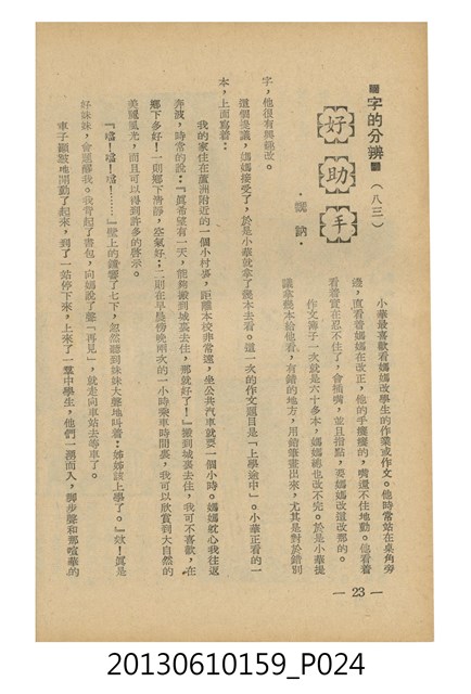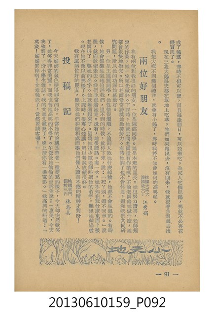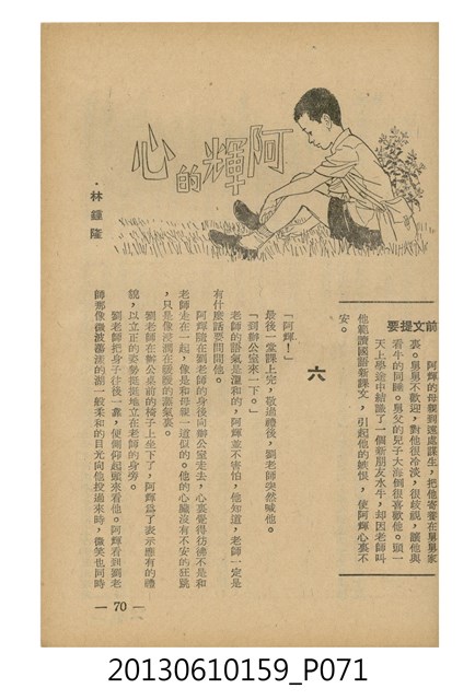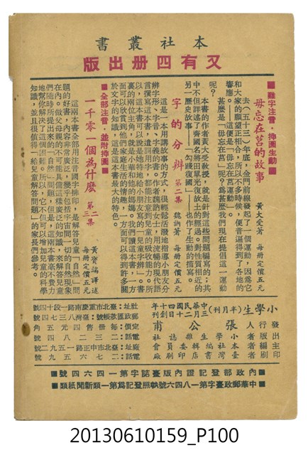 1、邱各容,《臺灣兒童文學史》(臺北:五南,2005),頁37-69。2、 林佩縈,2006。〈1950年代臺灣兒童期刊發展之研究──以《學友》、《東方少年》為例〉,國立臺北教育大學社會科教育學系歷史組專題研究論文,頁19-20。
