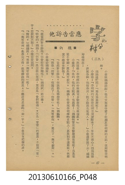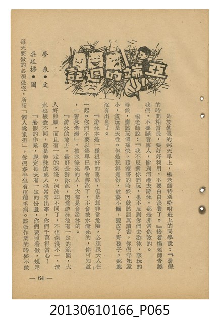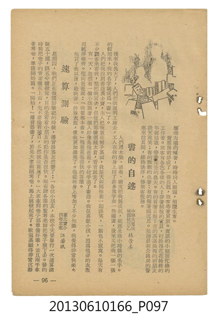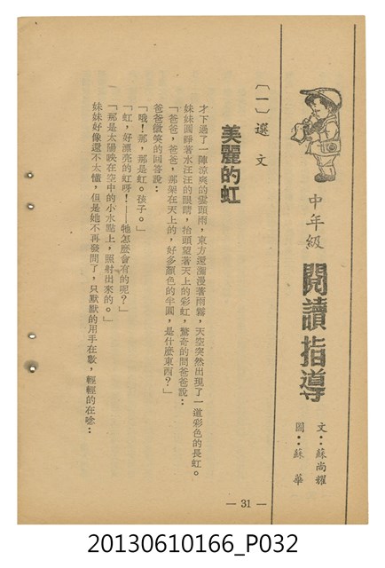 1、邱各容,《臺灣兒童文學史》(臺北:五南,2005),頁37-69。2、 林佩縈,2006。〈1950年代臺灣兒童期刊發展之研究──以《學友》、《東方少年》為例〉,國立臺北教育大學社會科教育學系歷史組專題研究論文,頁19-20。