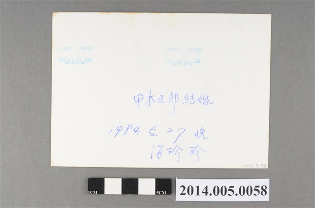 按此張照片背面的註記提示,此為甲木五郎結婚的祝賀餐聚,地點位於海珍珍餐廳,時間為1984年5月27日晚。根據與會人士有多位吳錦煌先生的南商同學推測,甲木五郎可能為吳錦煌先生就讀南商時期的任教老師。