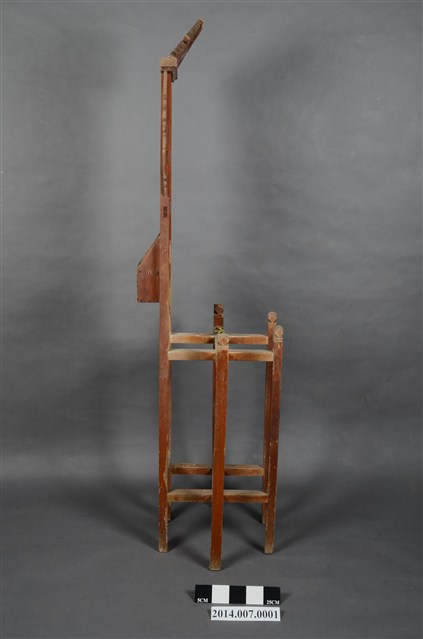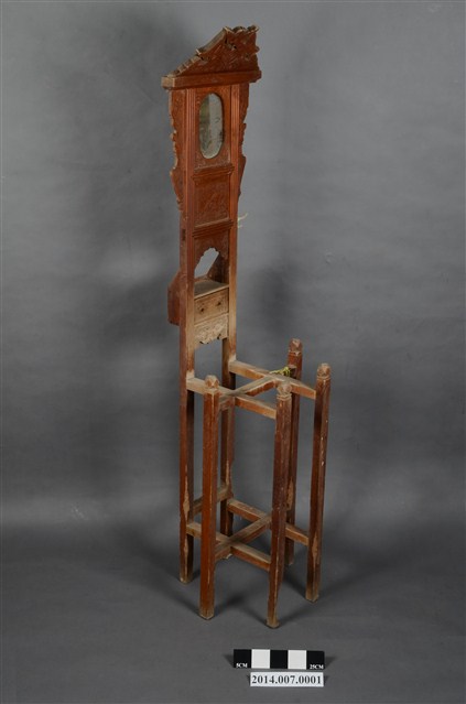 此臉盆架除表面髒汙,及腳部有被老鼠啃咬的痕跡外,其餘狀況良好。