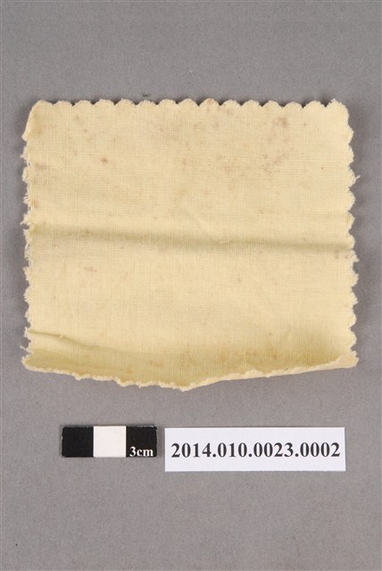 本物件為白金町眼鏡組中之眼鏡布。淡黃色,上寫有製造公司的名稱及相關聯絡方式:「上海眼鏡製造公司 台南市白金町二丁目 電話長 四一八 四六九 番 SHANGHAI OPTICAL&CO」。