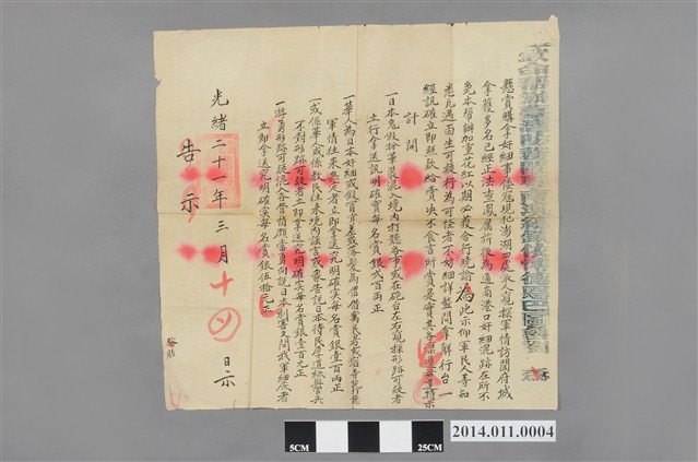 2014.011.0004 劉永福懸賞抓拿日本奸細告示