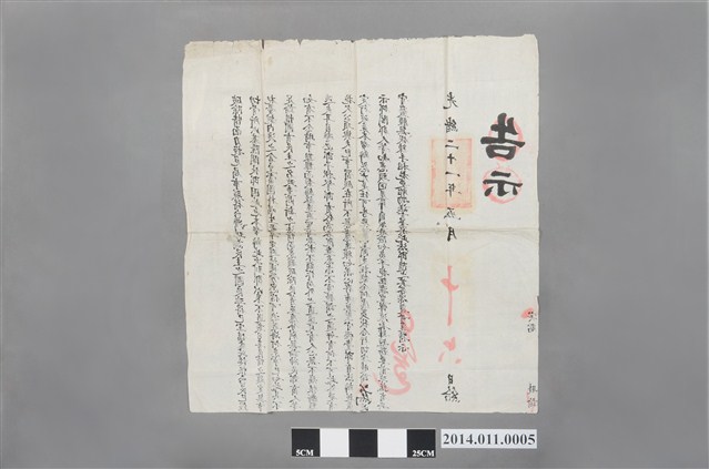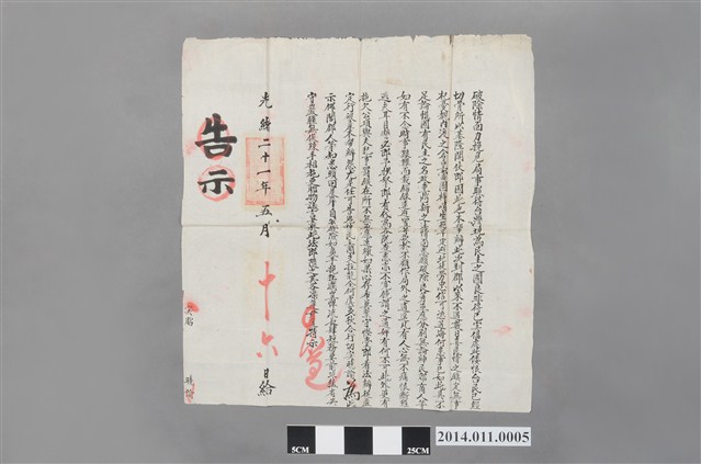 2014.011.0005 劉永福為臺灣民主國成立曉諭臺灣人民告示