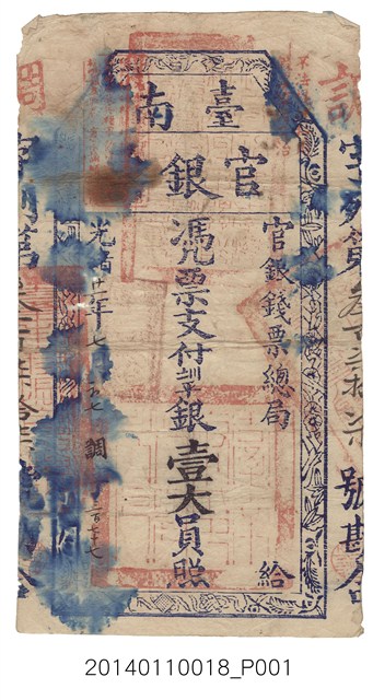 2014.011.0018 官銀錢票總局壹大員臺南官銀票
