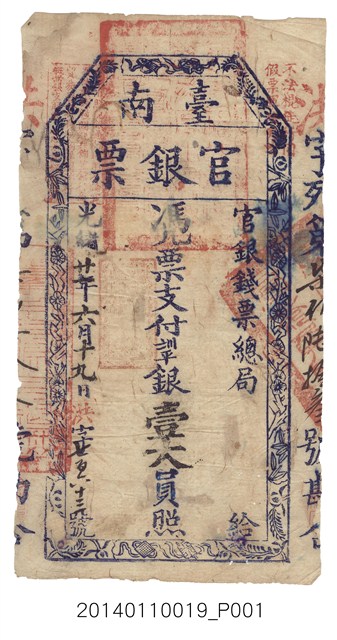 2014.011.0019 官銀錢票總局壹大員臺南官銀票