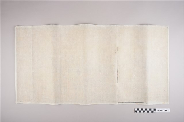 1. 本文物為臺灣國性爺大合戰的浮世繪,圖名左側寫有「彼國南北凡百里,東西近廿十五里卜云」,圖中人物長相及服飾的畫風都接近和式。圖畫正中央、手持雙刀的人應為國姓爺,且其應代表日本出戰,因為圖畫左側畫有太陽旗。以紅、藍、白為底的為角色名。許多這類型的畫都將鄭成功描繪的很英勇。