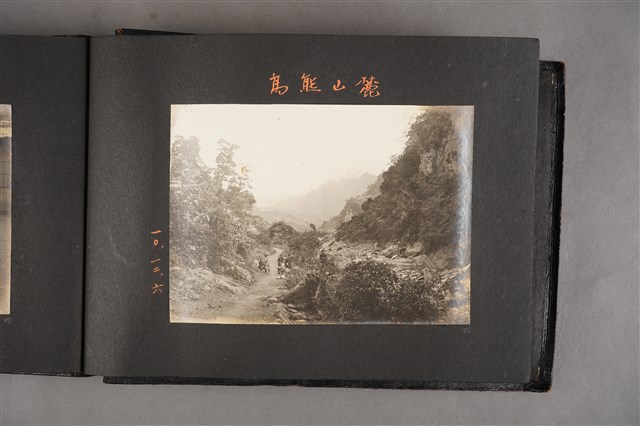 1. 本件為大正10年(1921)12月6日所拍攝之黑白相片,相片內容高熊山麓,圖中可見戴帽警察穿著短袖制服攜土狗於山麓旁小徑瞻望並休息,一旁為大湖溪支流與亂石河床,現址約為苗栗縣泰安鄉榮安部落之東側,相片四角顏色些許剝落。