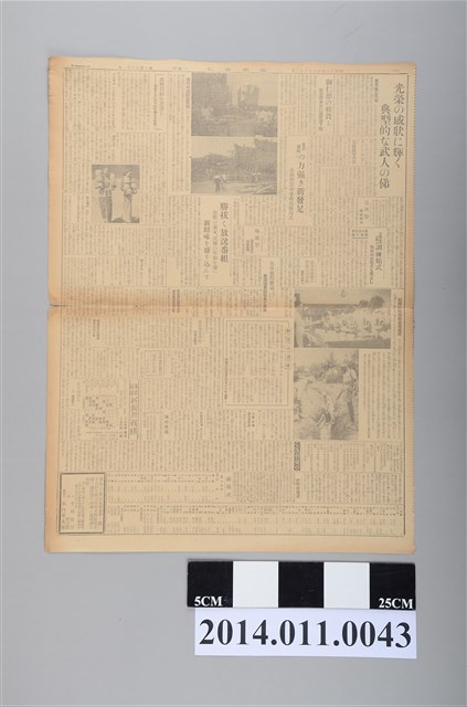 2.《臺灣日報》,前身為日本時代在臺南創立之《臺南新報》,《臺南新報》1899年由富地近思創辦,與《臺灣日日新報》、《臺灣新聞》並稱為日治時期臺灣三大官報,與《臺灣日日新報》相比《臺南新報》屬於地方報紙,其報導內容雖仍有世界、日本及臺灣各地消息,但比較他報相比專注於南部消息,且內容較為活潑,對於南部的經濟、米、糖報導較為精確,1937年4月中日戰事將起,日本當局下令所有報刊停止漢文欄,《臺南新報》更名為《臺灣日報》。1944年3月又與《臺灣日日新報》、《臺灣新聞》、《興南新聞》、《東臺灣新報》、《高雄新報》6家日報同遭廢刊,而後齊併為《臺灣新報》刊行。由報導內容看來,戰爭消息已成為主要篇幅,且可能受戰事影響,物資缺乏,刊載篇幅已從8面縮減至1面。昭和18年(1943)12月29日(夕刊)。