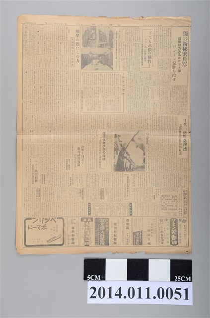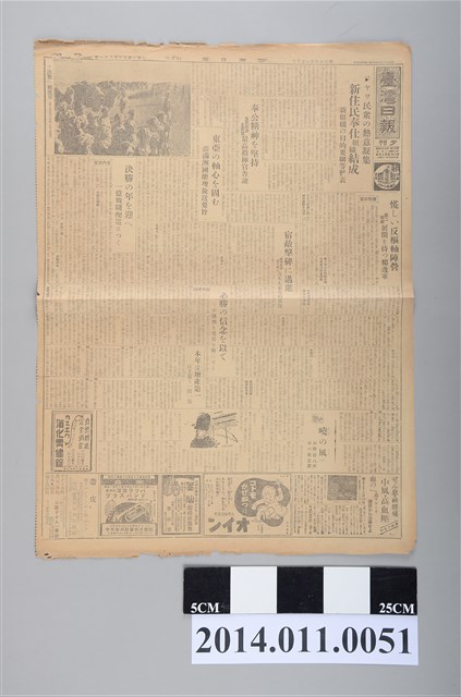 2014.011.0051 臺灣總督府出版《臺灣日報夕刊》昭和19年1月10日版