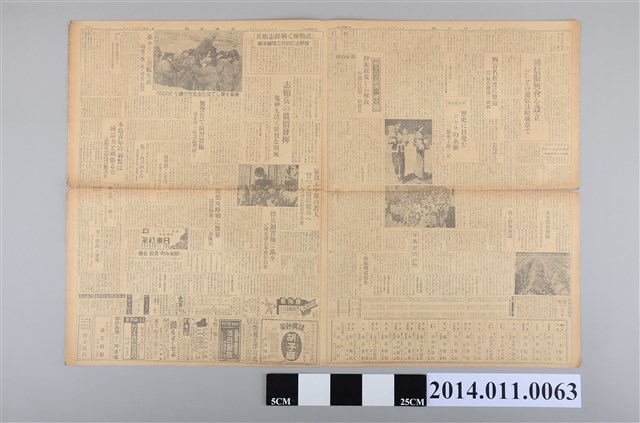 1.標題:1943年12月19日。マーカス岬沖に邀擊敵艦船七十一以上屠る、來襲の艦艇船殆ど全滅、潛水艦部隊に感狀、敵ラバウルを狙ふ、敵側も損害認む、食糧增產指導に萬全、決死的協力望む、第一回支那事變文官論功行賞、地中海の獨空軍強化、土國在留同胞引揚げは??、奢侈的方面に增稅、米英軍攻擊頓挫、赤機七十擊墜、東部戰線戰況、人事。