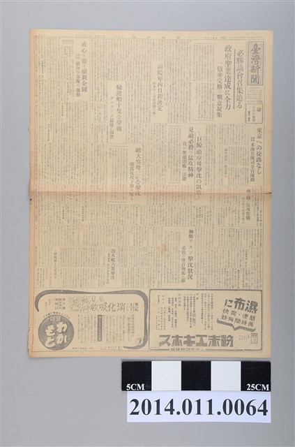 2014.011.0064 臺灣總督府出版《臺灣新聞報》昭和18年12月20日版