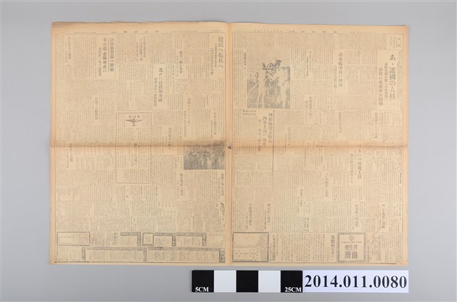 1.本文件為昭和18年(1943)12月19日興南新聞臺灣本社發行之《興南新聞第4644號》第一頁,當時正值太平洋戰爭時期,報紙內容提及在ツロモ ン海域潛水部隊作戰的情形,以及表揚他們偉大的戰績。另外,本期探討的主題尚有:マツカサ司令部-皇軍の猛反擊自認,日軍在マカス島與敵上陸部隊的激戰、文官功勞者論功行賞名單、在中國前線部隊的狀況、美國海軍司令官的陳辯等議題。大致上來看,本期報導的內容主要是在談論日本軍隊在太平洋島嶼的海上戰役中的戰況,以及前線部隊在中國的情形。