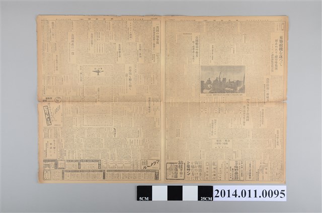 1.本文件為昭和19年(1944)1月12日興南新聞臺灣本社發行之《興南新聞第4667號》第一頁,當時正值太平洋戰爭時期,報紙內容有陸軍閱兵式的圖片,並提及軍需品發註的調整、發註調整協議會的設置。另外,本期探討的主題尚有:敵空母群潰滅、遂川飛行場を襲ふ、マタンに來襲頻繁:敵機二十機擊墜。大致上來看,本期報導的內容主要是在談論日本在軍需品發放上的調整,以及日本在國內及國外的戰況。