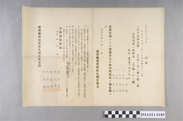 2014.011.0185 大正3年指令第26287號保管金申請書