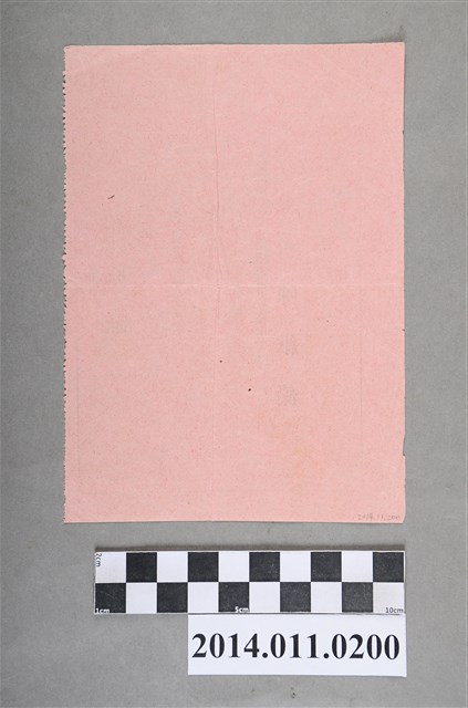 1. 本文物為明治44年(1911)8月17日第二三○號寄附金領收證,其性質與金錢相關,領收證人為劉河盛,新竹孔子廟修繕費寄附金為一金四十元,經手人為新竹孔子廟修繕寄附金募集委員、頭份區長 陳維藻,其中領收證人蓋有戳印以及經手人之印章,領收事項將怕口說無憑,因此留有此文書為據。