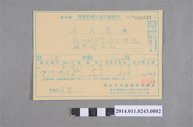 2014.011.0243.0002 昭和17年保險金付款指南編號818342