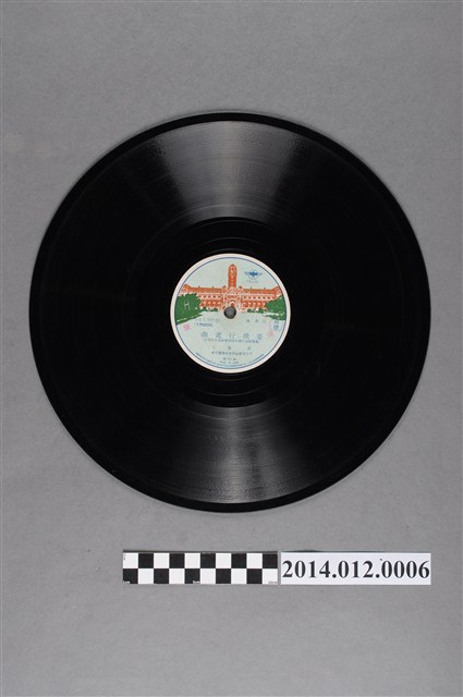1938年總督府發起「臺灣行進曲」徵選,入選詞曲第一名由各唱片公司競錄發行,為振奮軍民之用。當年度即發行有五種版本的〈臺灣行進曲〉(三栗谷櫻 詞、陳炎興 曲),各有不同歌手演唱。這張泰平發行的〈臺灣行進曲〉AB兩面分別由聲樂家橋本一郎、本雅子演唱,圓標上印製有總督府,為現有罕見之特殊版本,特別罕見,可見當時唱片業與戰爭時局的微妙關係。這首歌曲近年經研究者發現,作曲者陳炎興即知名文學家陳映真的父親。