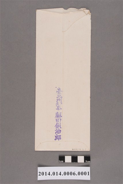 1937年參加家計調查感謝函信封,署名為"臺北州知事 藤田損治郎"。