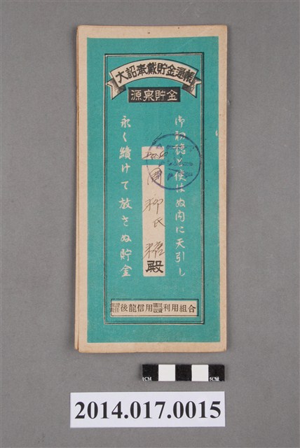2014.017.0015 保證責任後龍信用購買販賣利用組合給周柳糖大詔奉戴儲金簿