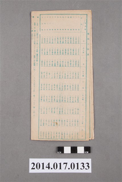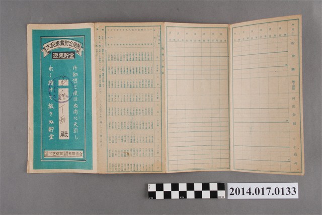 本物件為戰爭期間1943年~1945年期間後龍、公司寮、水尾子、二張犁、大山腳、頭湖、崎頂等地人民之銷帳儲金簿,內頁印有大詔奉戴字樣,並以婚葬儀式簡化、宴會遠慮、新謁見合せ、虛禮廢止、節酒節煙、徒步勵行、副業勉強倡導儲金,另外印有儲簿規定如:不許轉讓、改印需申請等,背頁附有複利合計表。大詔指的是1941年對美、英兩國之宣戰詔書,1942年起每個月8日定為大詔奉戴日,為日本政府為太平洋戰爭所運作的國民運動,隨著戰爭規模擴大,戰時有各項國民強迫儲蓄的舉措,以支援前線戰事,1938年日本政府為因應中日戰爭即推行有愛國儲蓄運動,本物件則為1942年後因應戰爭規模擴大後之儲蓄項目,范雅鈞指出本儲金簿為強制存款,直接由薪資扣除。