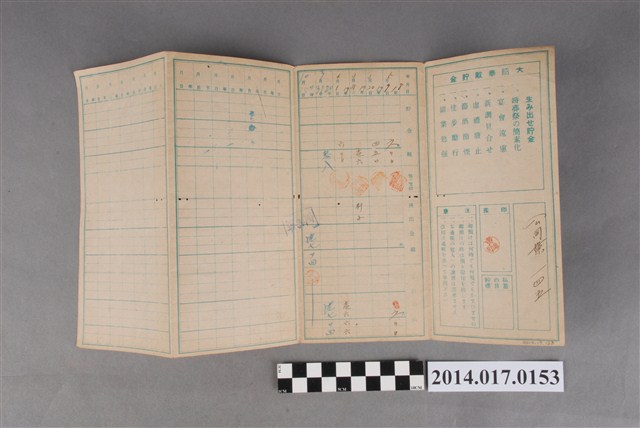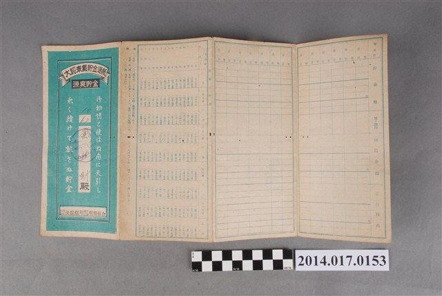 地址載為公司寮145。本物件為戰爭期間1943年~1945年期間後龍、公司寮、水尾子、二張犁、大山腳、頭湖、崎頂等地人民之銷帳儲金簿,內頁印有大詔奉戴字樣,並以婚葬儀式簡化、宴會遠慮、新謁見合せ、虛禮廢止、節酒節煙、徒步勵行、副業勉強倡導儲金,另外印有儲簿規定如:不許轉讓、改印需申請等,背頁附有複利合計表。大詔指的是1941年對美、英兩國之宣戰詔書,1942年起每個月8日定為大詔奉戴日,為日本政府為太平洋戰爭所運作的國民運動,隨著戰爭規模擴大,戰時有各項國民強迫儲蓄的舉措,以支援前線戰事,1938年日本政府為因應中日戰爭即推行有愛國儲蓄運動,本物件則為1942年後因應戰爭規模擴大後之儲蓄項目,范雅鈞指出本儲金簿為強制存款,直接由薪資扣除。
