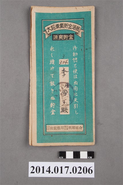 2014.017.0206 保證責任後龍信用購買販賣利用組合給李雪玉大詔奉戴儲金簿