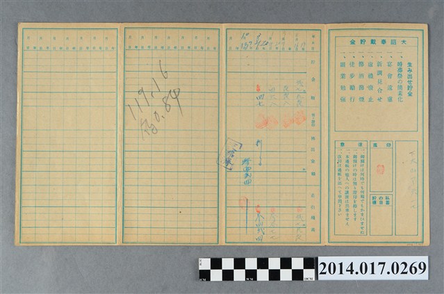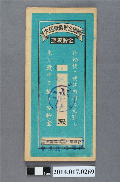 2014.017.0269 後龍庄農業會給鍾有熙大詔奉戴儲金簿