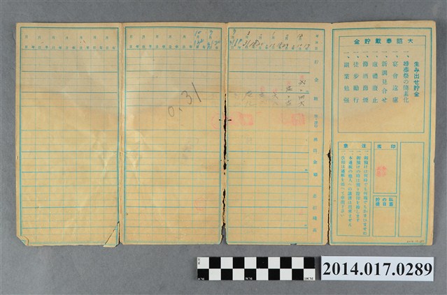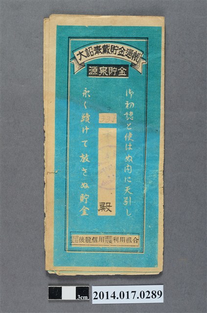 2014.017.0289 保證責任後龍信用購買販賣利用組合給李張藩大詔奉戴儲金簿
