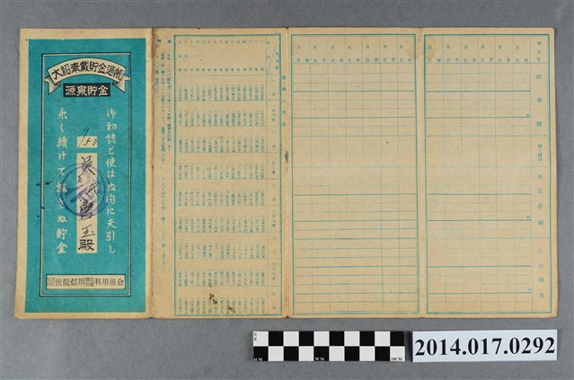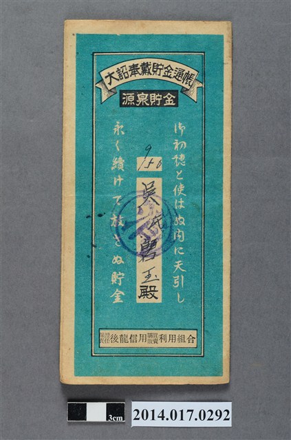 2014.017.0292 保證責任後龍信用購買販賣利用組合給吳碧玉大詔奉戴儲金簿