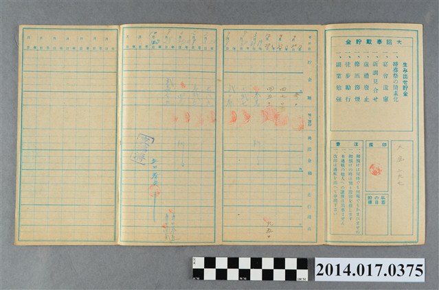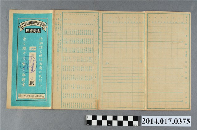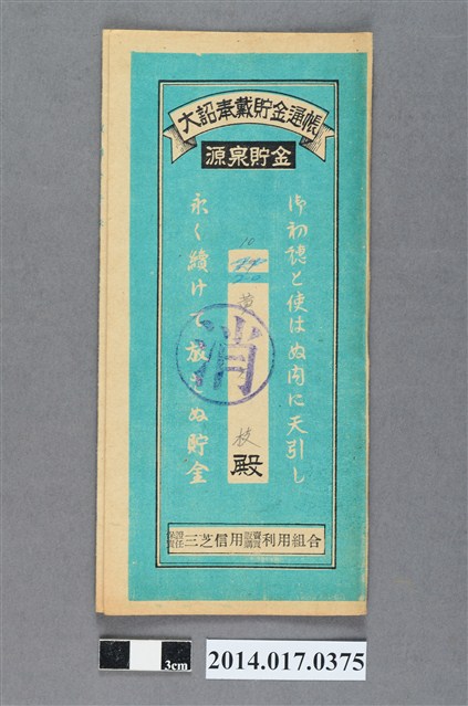 2014.017.0375 保證責任三芝信用販賣購買利用組合給黃石枝大詔奉戴儲金簿