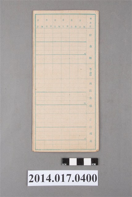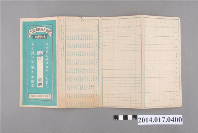 本物件為戰爭期間1943年~1945年期間後龍、公司寮、水尾子、二張犁、大山腳、頭湖、崎頂等地人民之銷帳儲金簿,內頁印有大詔奉戴字樣,並以婚葬儀式簡化、宴會遠慮、新謁見合せ、虛禮廢止、節酒節煙、徒步勵行、副業勉強倡導儲金,另外印有儲簿規定如:不許轉讓、改印需申請等,背頁附有複利合計表。大詔指的是1941年對美、英兩國之宣戰詔書,1942年起每個月8日定為大詔奉戴日,為日本政府為太平洋戰爭所運作的國民運動,隨著戰爭規模擴大,戰時有各項國民強迫儲蓄的舉措,以支援前線戰事,1938年日本政府為因應中日戰爭即推行有愛國儲蓄運動,本物件則為1942年後因應戰爭規模擴大後之儲蓄項目,范雅鈞指出本儲金簿為強制存款,直接由薪資扣除。