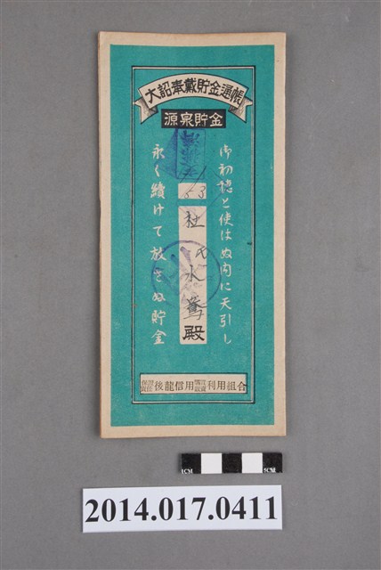 2014.017.0411 保證責任後龍信用購買販賣利用組合給杜水鴦大詔奉戴儲金簿