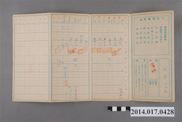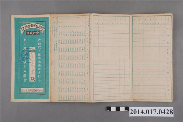 2014.017.0428 保證責任三芝信用販賣購買利用組合給周文騫大詔奉戴儲金簿