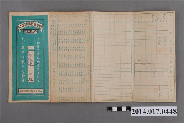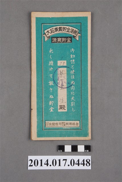 2014.017.0448 保證責任後龍信用購買販賣利用組合給蔡金生大詔奉戴儲金簿