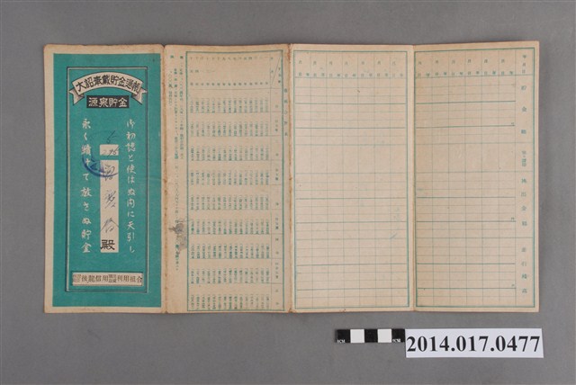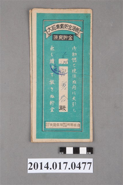 2014.017.0477 保證責任後龍信用購買販賣利用組合給曾慶春大詔奉戴儲金簿
