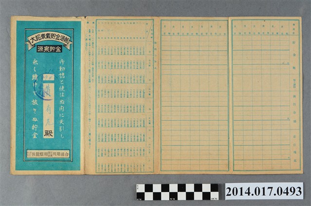 2014.017.0493 保證責任後龍信用購買販賣利用組合給黃有允大詔奉戴儲金簿